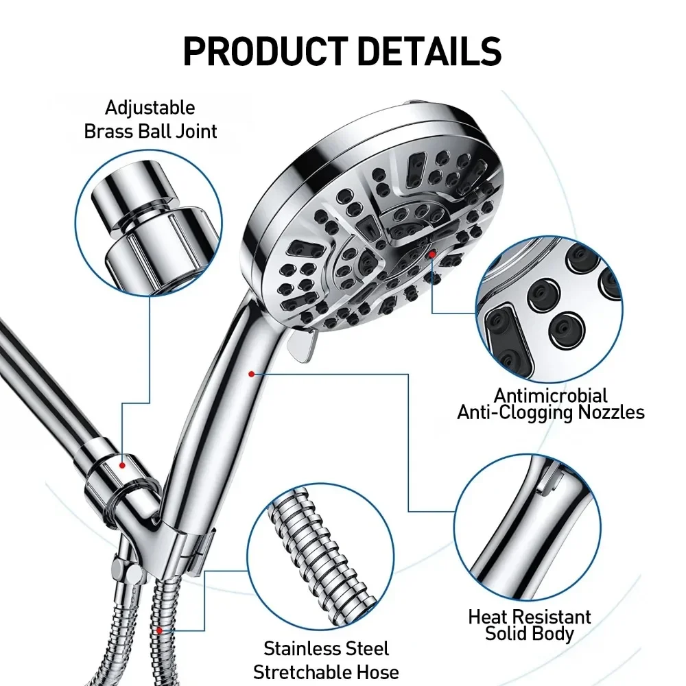 【Anti-Clog Nozzles】Shower head with handheld spray combo,avoid weak water flow and inconvenient repairs with our innovative anti-clog nozzles. Our shower head is designed to always keep your water pressure optimal and your shower experience satisfactory.